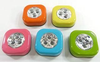 ワンプッシュでLEDが明るく光って、背面の両面テープを使えば