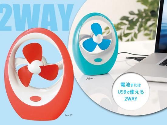 電池とUSBの2WAYでどこでも使えるデスクファン♪